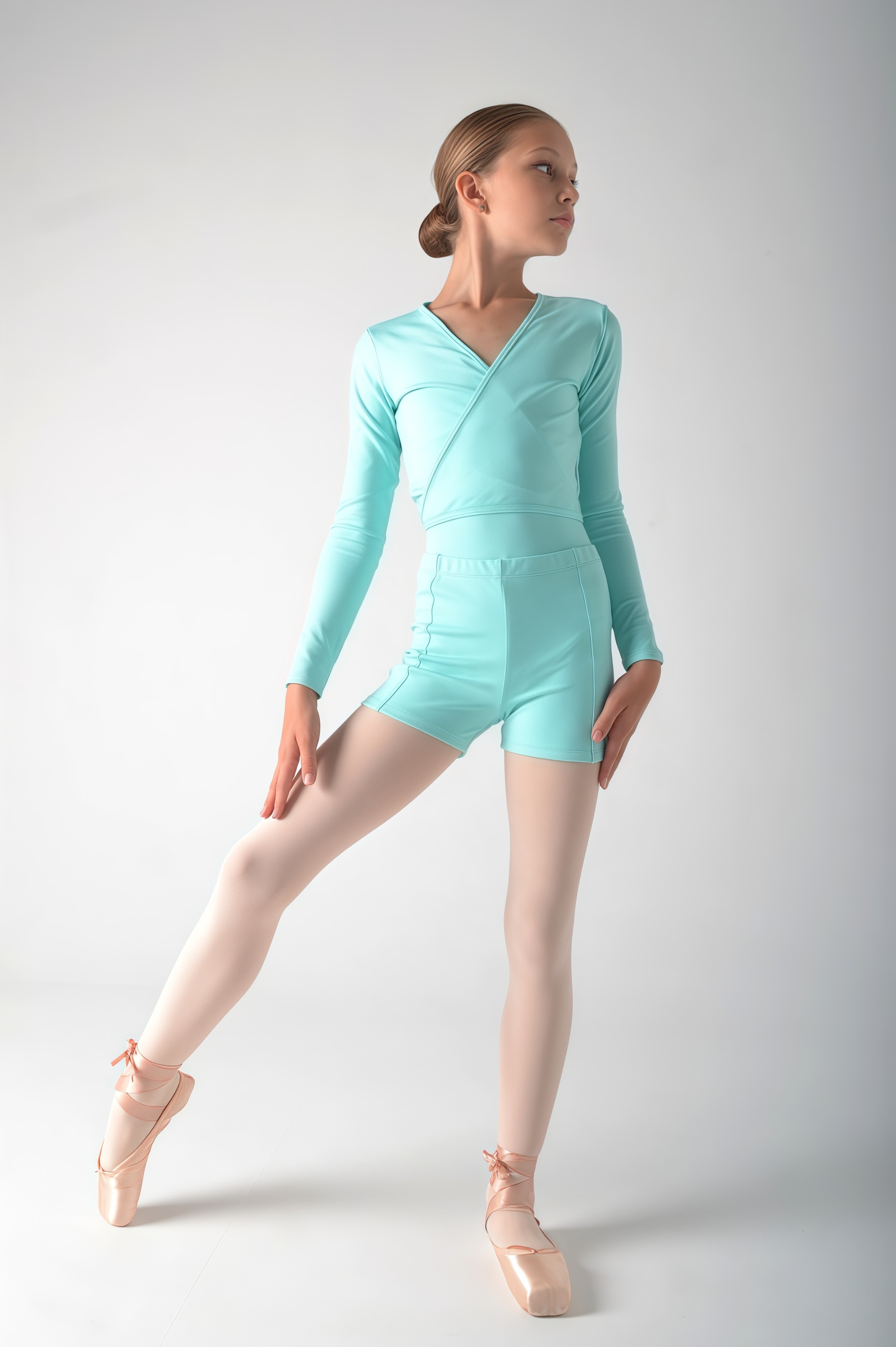 Модель сконструирована с учетом особенностей фигуры балерин и танцовщиц, очень лаконична и эстетична, подойдёт для балерин и спортсменок любого возраста. Топ отлично сочетается с купальником, лосинами и юбкой для танцев.